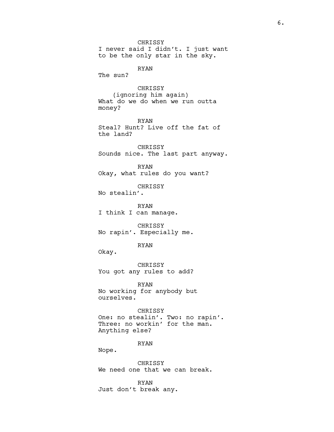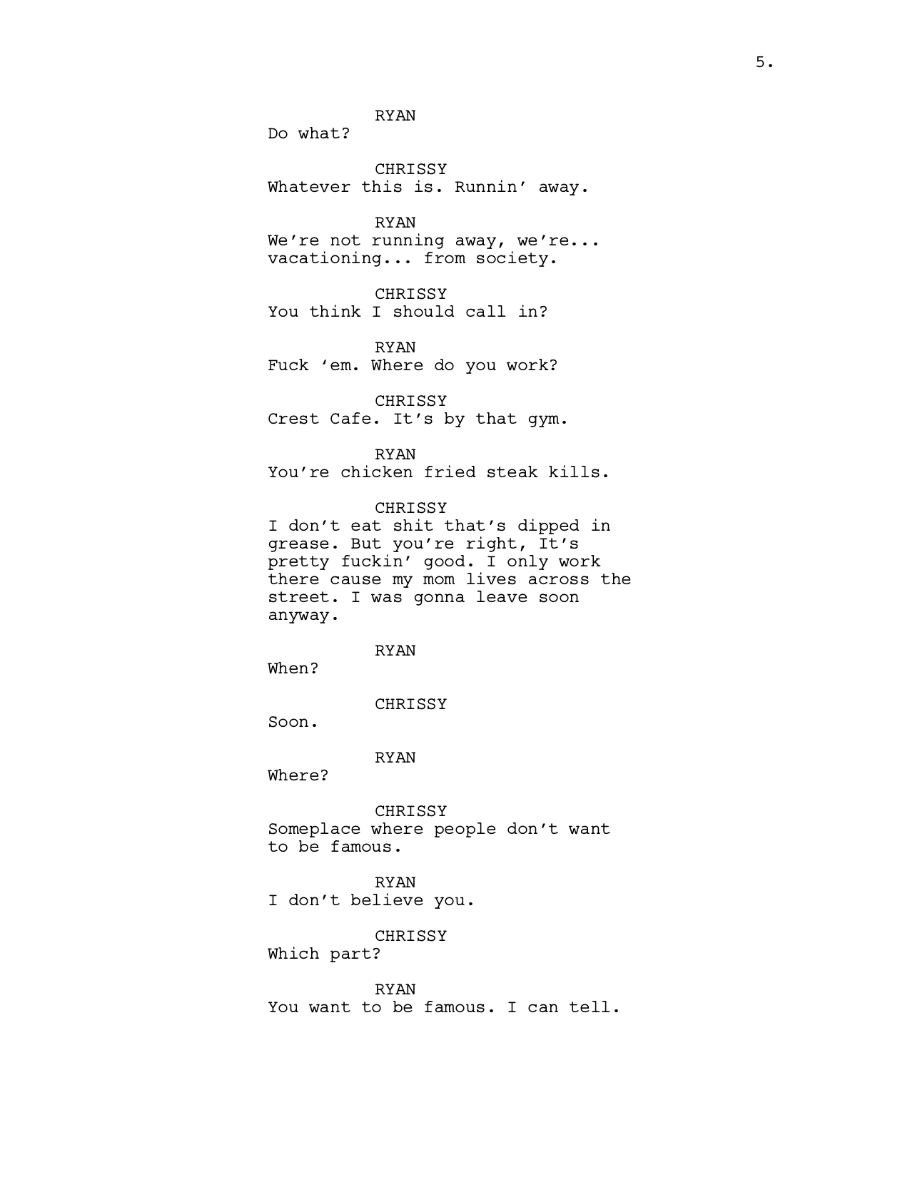 LOGLINE: Two young lovers embark on a cross-country crime spree. To request complete script, email: wagner.j.cody@gmail.com